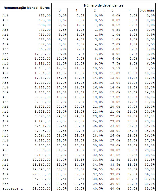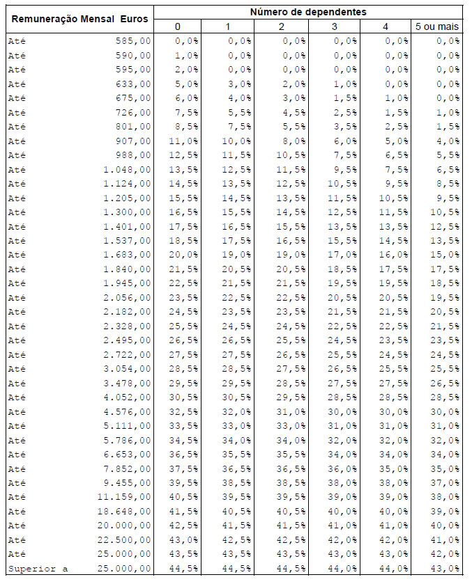 Tabelas de retenção na fonte para o ano de 2013